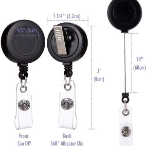 2 Pack – Retractable ID Name Badge Holder Reels with Swivel Alligator Clip (Black)