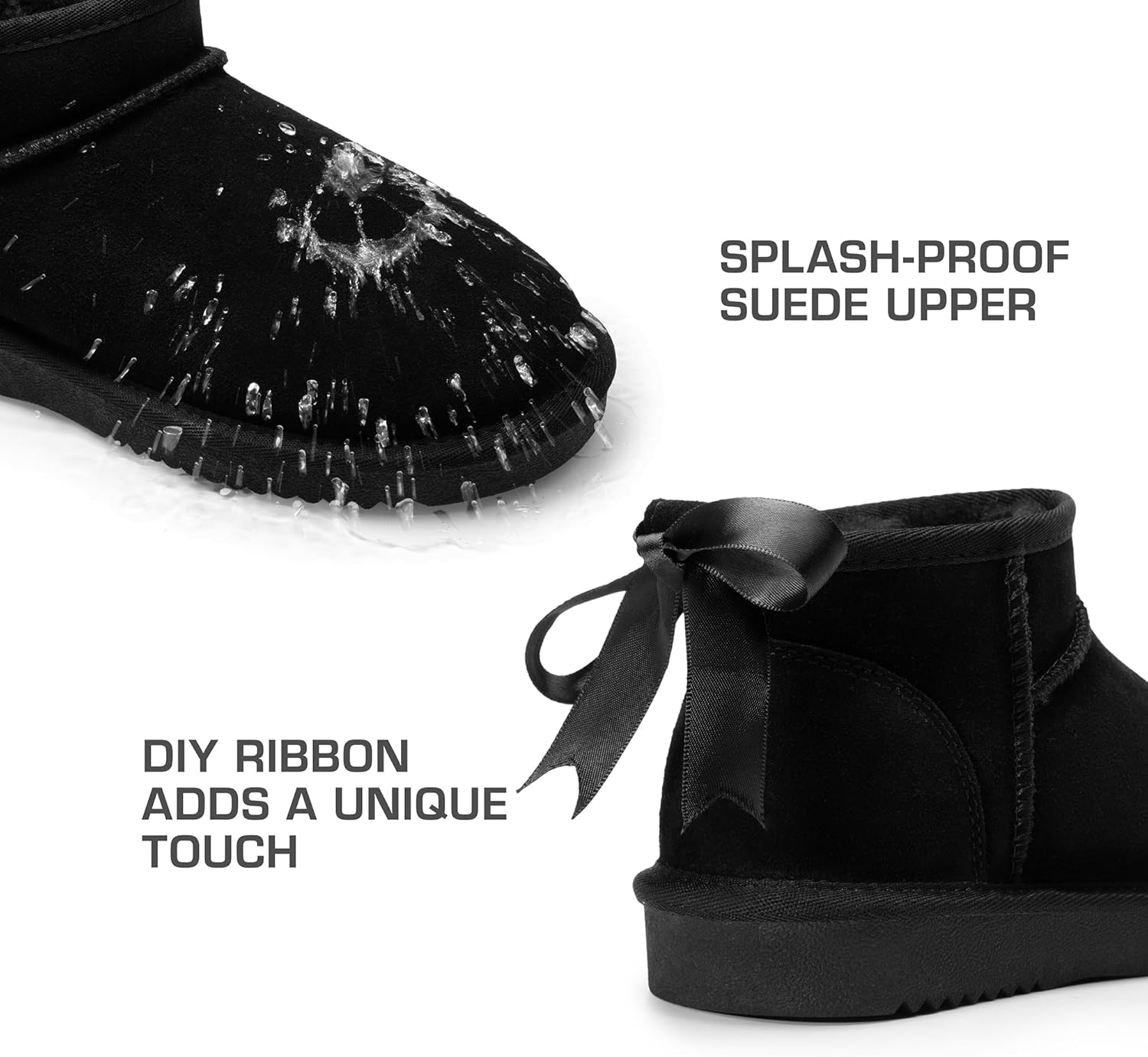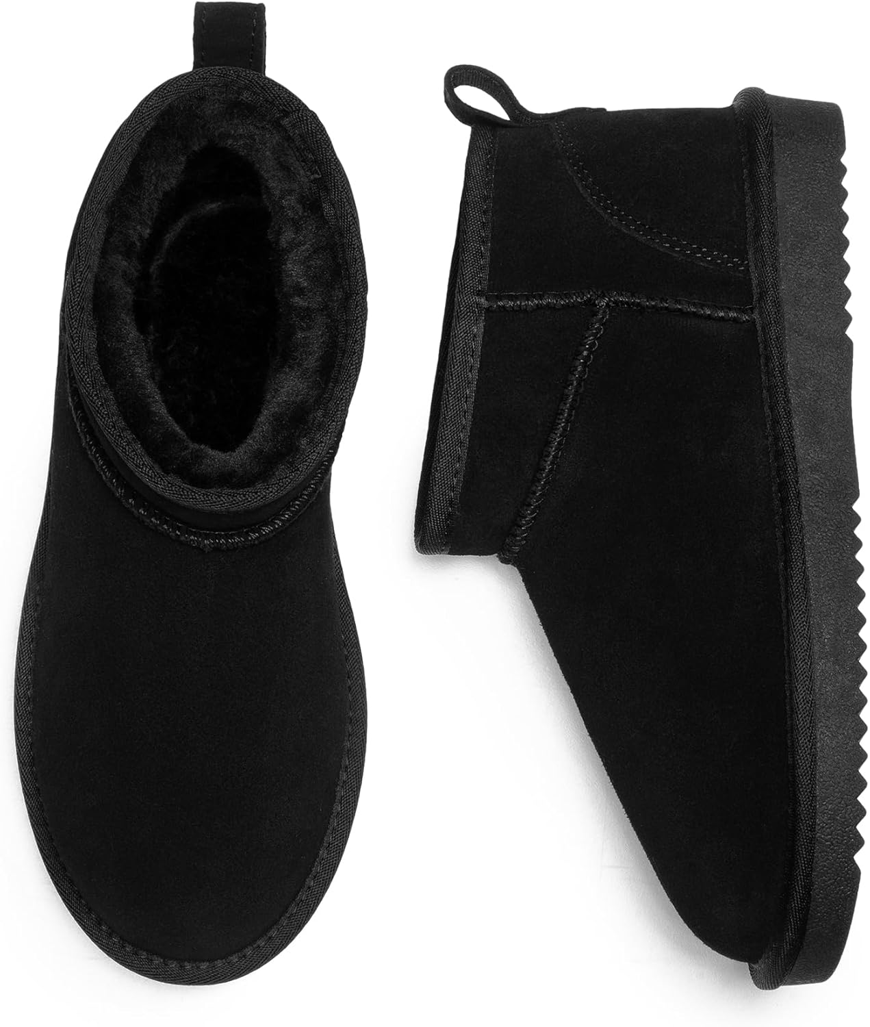 Ankle Winter Mini Boots for Women Genuine Suede Faux Fur Lining Water Resistant Warm Snow Boots Slip On Memory Foam Comfort Booties FuzzyClassic